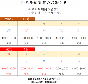 福山店からのお知らせ